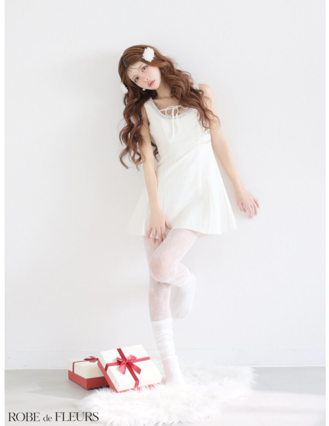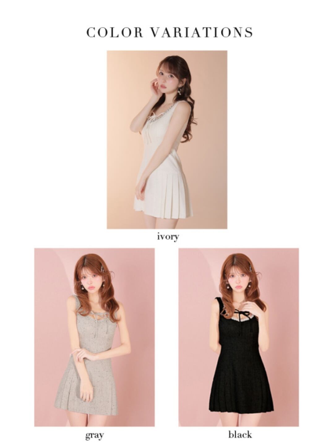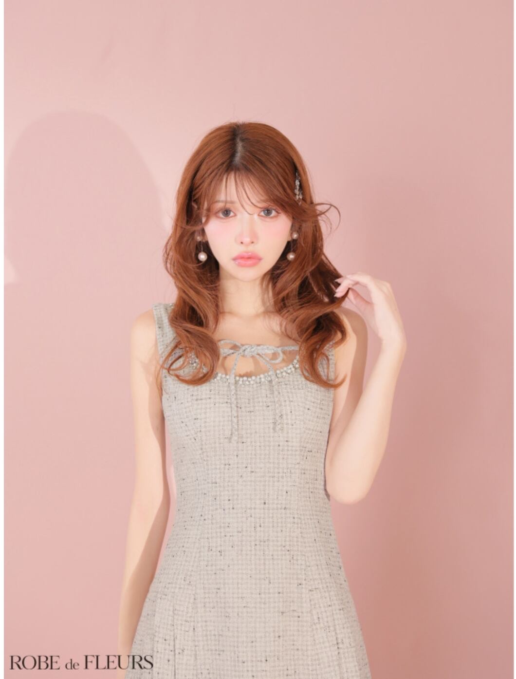 胸元のリボンとビジューラインが上品さの中にキュートな要素をプラス。